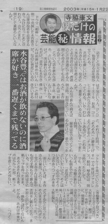 2003年1月22日「僕だけの芸能丸秘情報」ファイル整理してたら寺脇康文氏の新聞コラムの画像が出てきたのでおまけ。